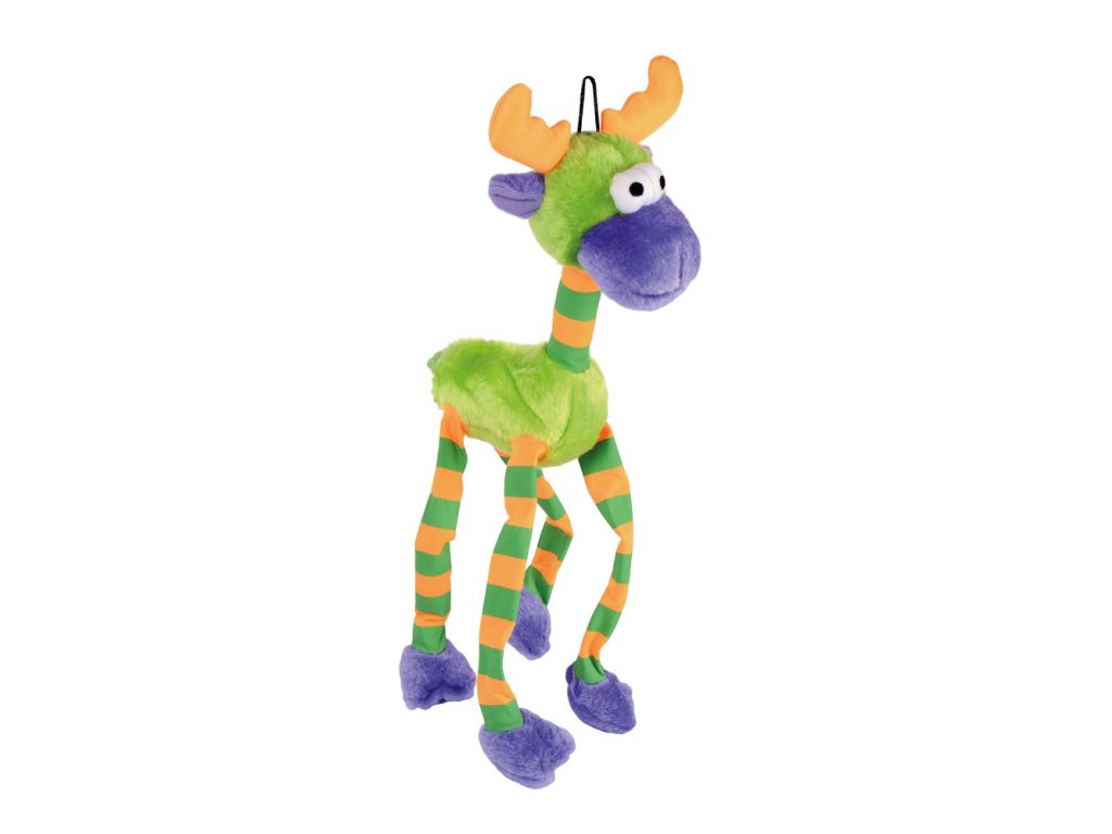 Plyšová hračka pro psy – Drunken Animal Loppi od Tommi je veselý a originální parťák na každodenní hraní, který vašeho psa okamžitě zaujme svým bláznivým tvarem a barevným provedením. Dlouhé končetiny se při pohybu komicky houpou, což podporuje přirozený lovecký instinkt a motivuje psa k aportování, třepání i přetahování.