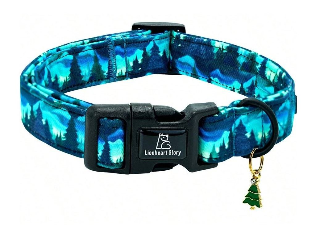 Stylový obojek pro psy s lesním vzorem je ideální volbou pro každodenní procházky i dobrodružství v přírodě. Moderní modro-černý design inspirovaný lesem a horami dodá vašemu pejskovi originální vzhled, který zaujme na první pohled.